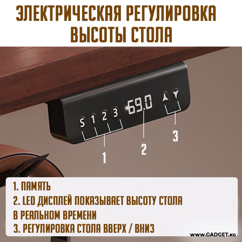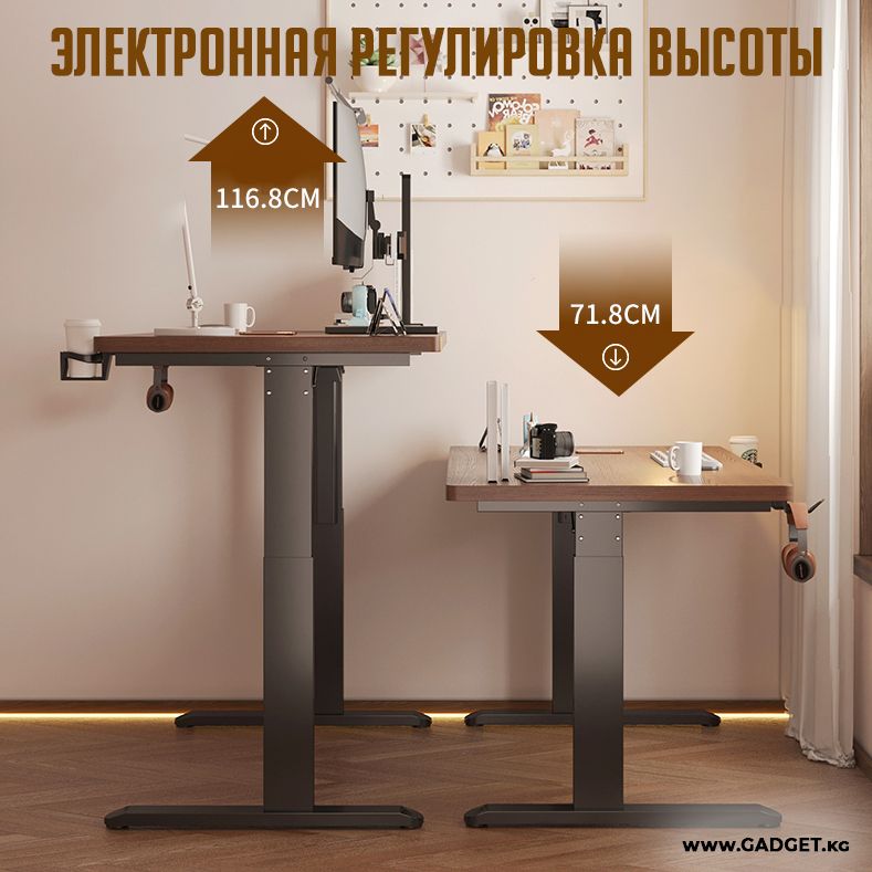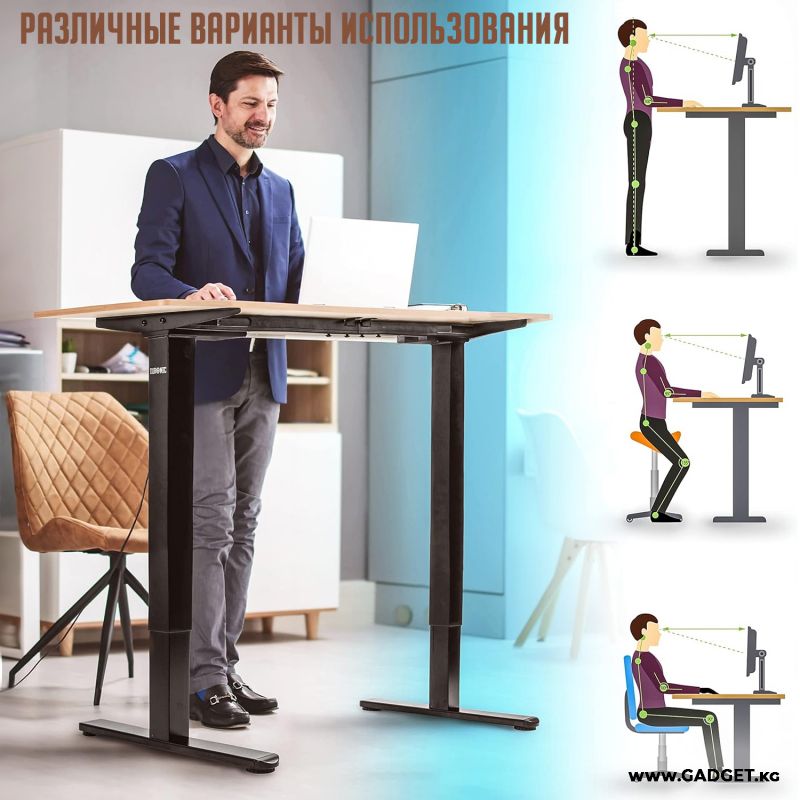 - Удобство. Электронная регулировка высоты позволяет быстро и легко настроить стол под нужную высоту, не прилагая усилий.