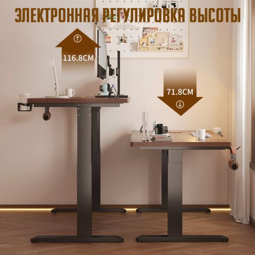 - Удобство. Электронная регулировка высоты позволяет быстро и легко настроить стол под нужную высоту, не прилагая усилий.