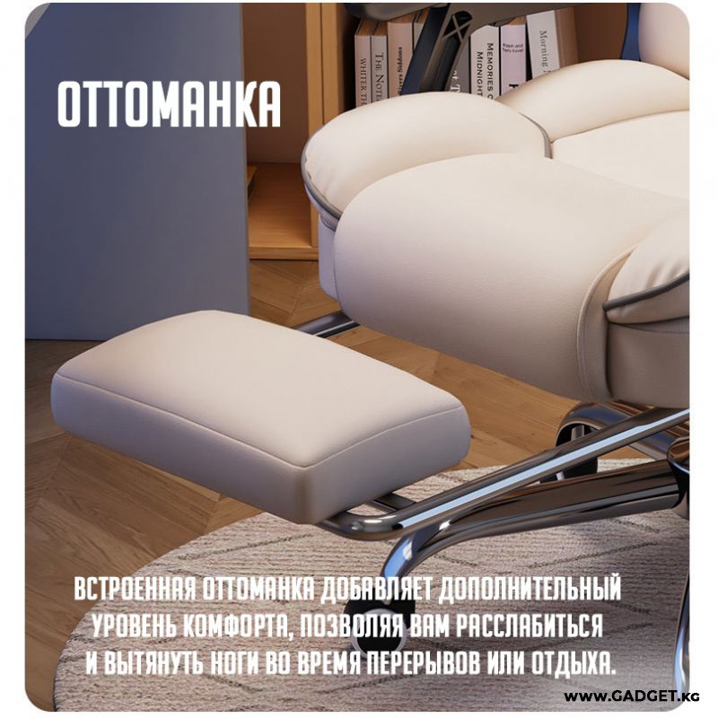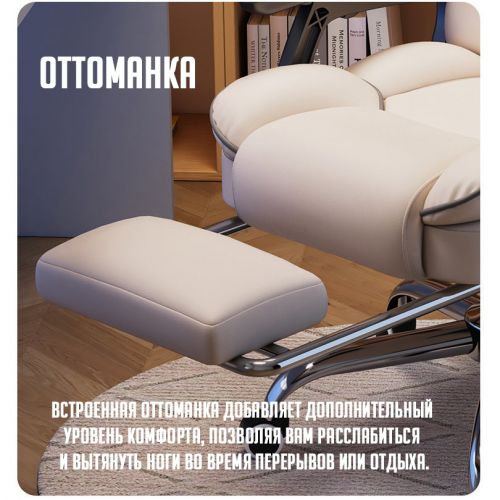 - Оттоманка: Встроенная оттоманка добавляет дополнительный уровень комфорта, позволяя вам расслабиться и вытянуть ноги во время перерывов или отдыха. Она легко выдвигается и убирается, не занимая лишнего места.
