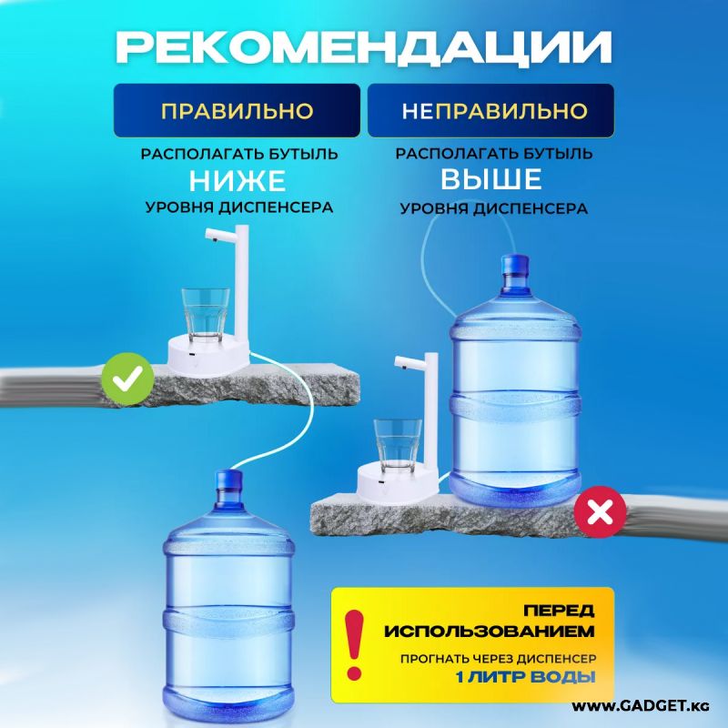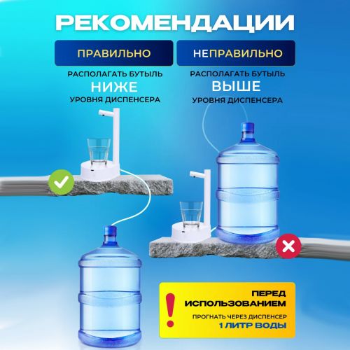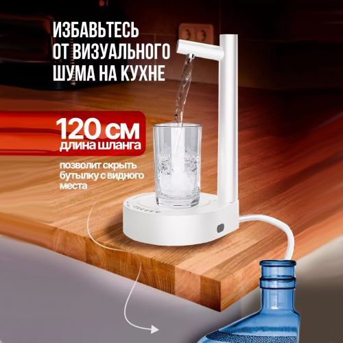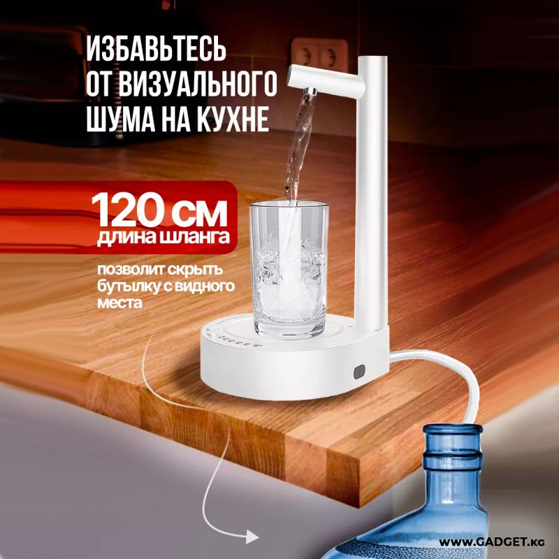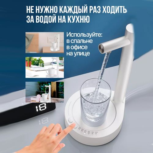 Диспенсер для воды настольный – идеальное решение для вашего дома или офиса. Этот продукт станет отличной альтернативой традиционному кулеру для воды. Электрическая помпа для воды занимает минимум места и великолепно выглядит на любой поверхности. Ее эстетичный внешний вид сочетается с белым дизайном интерьера. Она обладает рядом важных функций, которые обеспечивают удобство и эффективность использования. Устройство работает от аккумулятора на 1800 мАч, что обеспечивает длительное время работы без подзарядки и без лишних проводов.