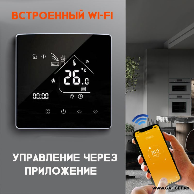 Умный Wi-Fi терморегулятор для теплого пола со встроенным и внешним датчиками температуры с легкостью монтируется в стандартную монтажную коробку, Имеет энергонезависимую память - после отключения и включения электропитания автоматически включится в режим работы подогрева теплого пола, который был ранее задан пользователем. Умный термостат - уникальное решение, которое сделает Вашу жизнь комфортной и удобной!
