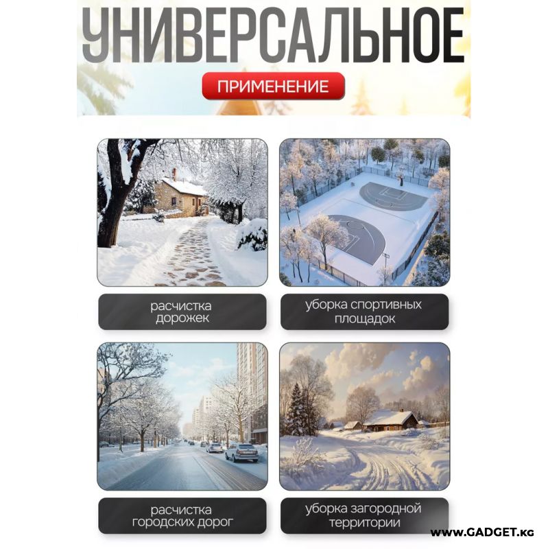 Ширина захвата снега составляет 30 см, а максимальная высота забора снега — 16 см, что позволяет эффективно справляться с небольшими сугробами и свежевыпавшим снегом.