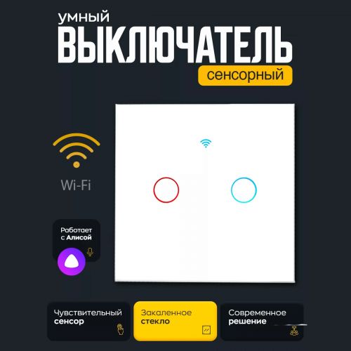 Умный сенсорный выключатель света Smart Switch WiFi Двойной