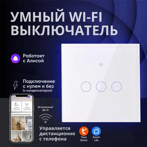 Умный выключатель света Smart Switch WiFi Тройной