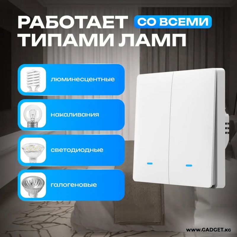 Умный выключатель света Smart Switch WiFi Двойной
