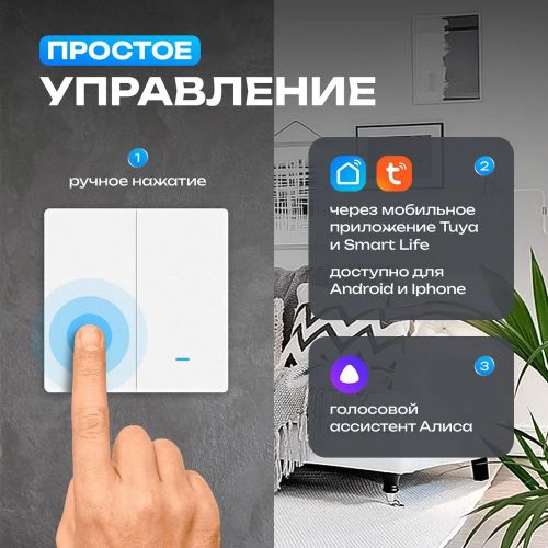 Этот умный выключатель станет отличным выбором для тех, кто ценит комфорт и удобство в повседневной жизни. С ним вы сможете забыть о необходимости искать выключатель в темноте или использовать неудобные переключатели. Просто скажите «Алиса, включи свет» или настройте автоматизацию в приложении, и ваш дом будет освещён в нужный момент. Благодаря поддержке WiFi и совместимости с Алисой, этот выключатель легко интегрируется в вашу систему умного дома и обеспечивает удобное управление освещением. Вы сможете настроить сценарии освещения, которые будут автоматически включаться при определённых условиях, например, при вашем возвращении домой или утром при пробуждении.