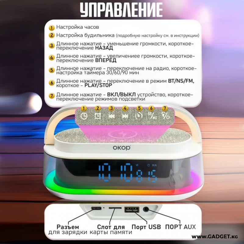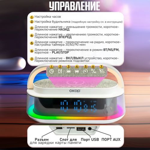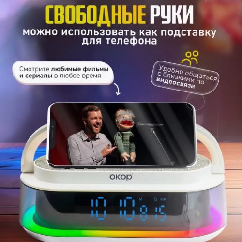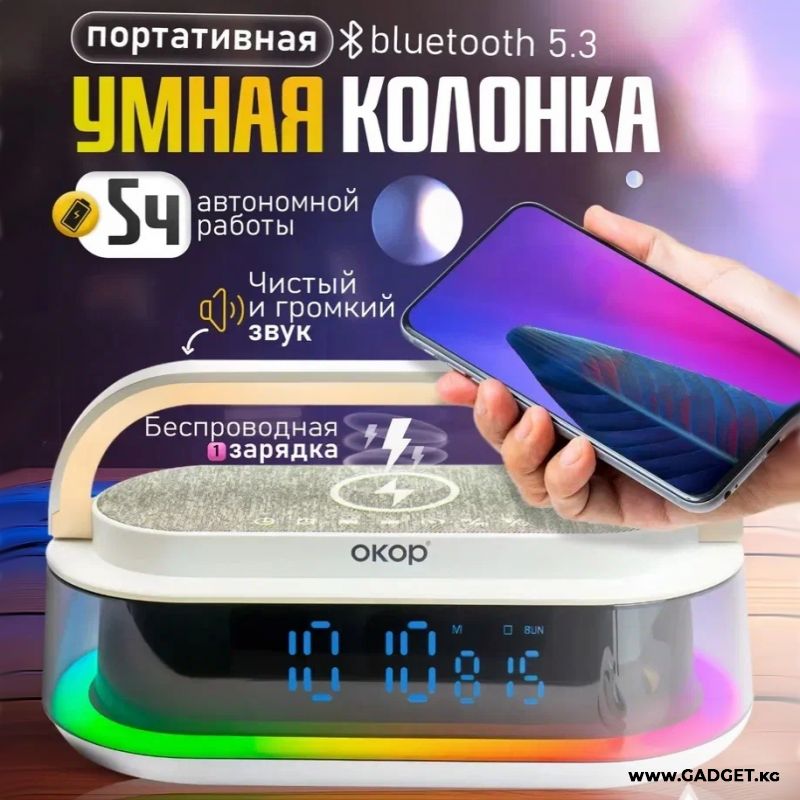 Умная музыкальная Bluetooth колонка от бренда okop – это портативное устройство, предназначенное для любителей качественной музыки. С поддержкой Bluetooth 5.0, этот колонка обеспечивает быструю и надежную связь с вашим устройством, поддерживающим Bluetooth, оснащена беспроводной зарядкой телефона. Вид колонки – портативная, что делает ее идеальным выбором для использования в любых условиях.