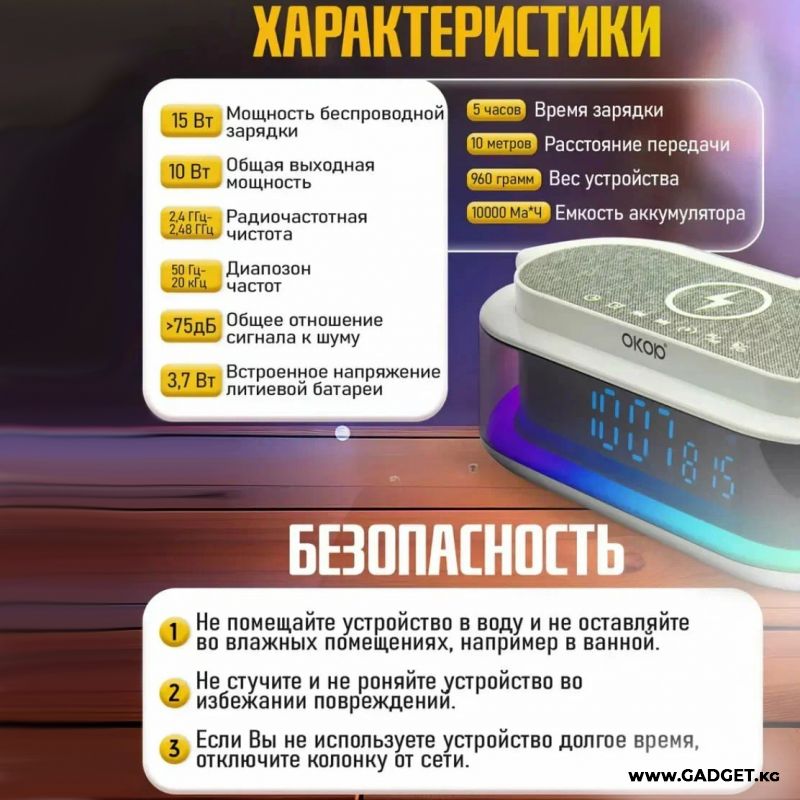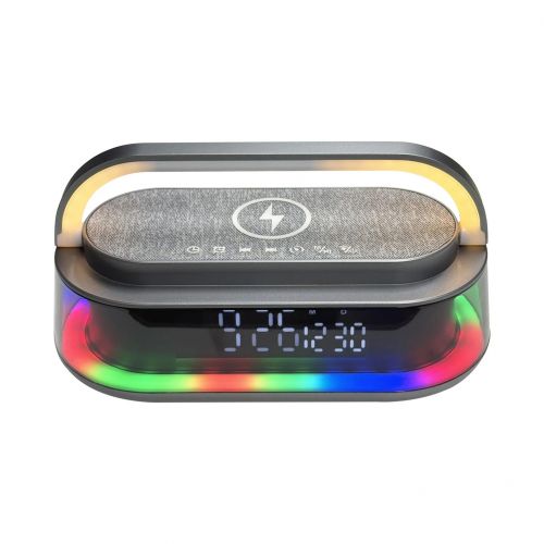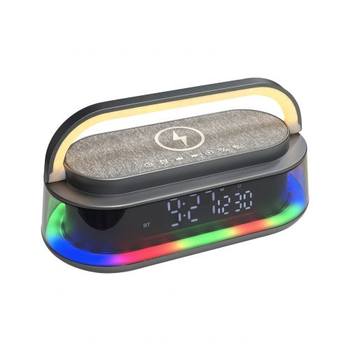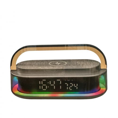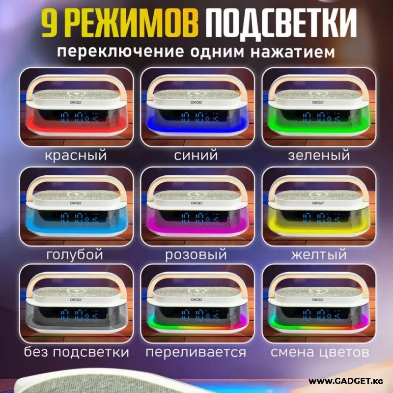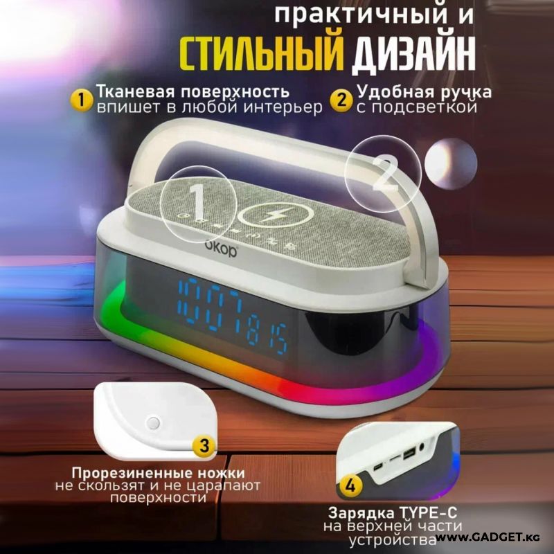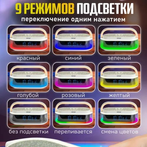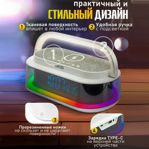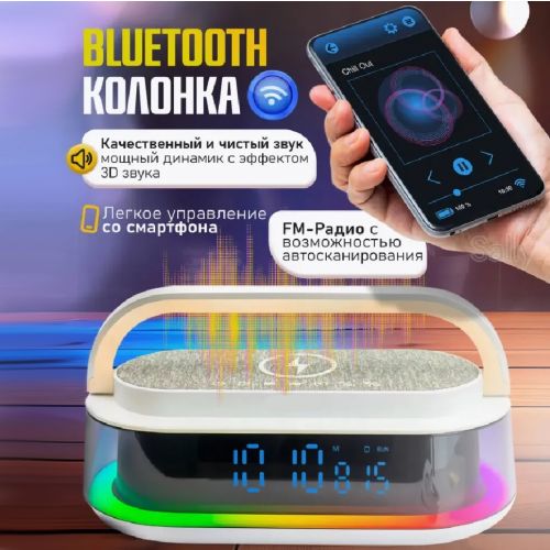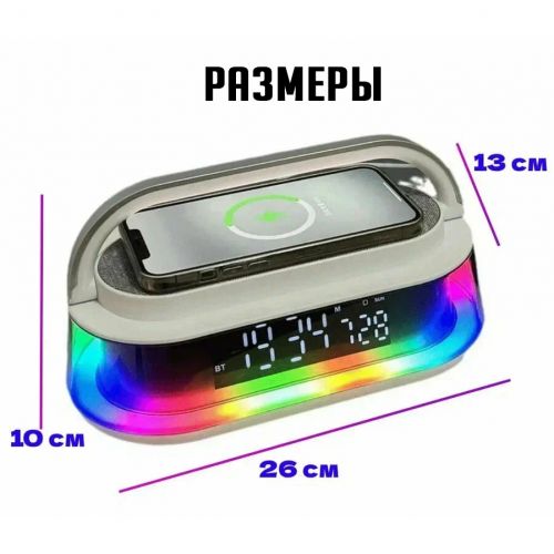 Спешите приобрести умную многофункциональную акустическую колонку. Она объединяет в себе несколько функций: ночник, часы и будильник. Стильный светильник имеет 9 режимов разнообразной подсветки. Питание от сети и от аккумулятора емкостью 1800 Ма*ч. Время автономной работы до трех часов дает возможность слушать аудио, не беспокоясь о разрядке. Подключение для подзарядки осуществляется кабелем с разъемами USB и Type-C. Через Bluetooth настольная музыкальная смарт станция устанавливает устойчивую связь на расстоянии до 10 м со смартфоном, Apple iphone, планшетом с операционной системой Android или iOS. Мощность динамика дарит наслаждение качественным звучанием музыки. Имеется специальная платформа для беспроводной зарядки телефона. Положите на нее свой разряженный гаджет и забудьте о зарядных проводах.