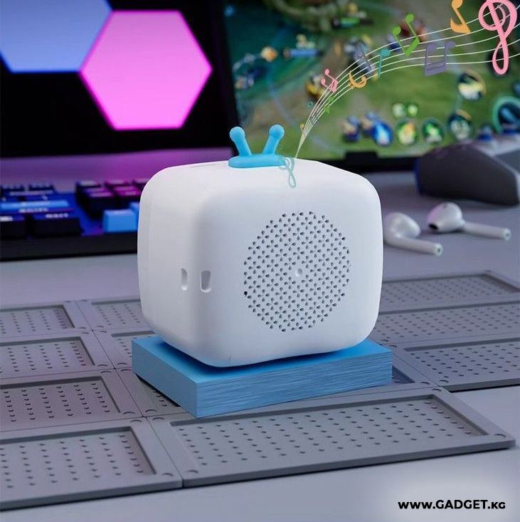 Миниатюрный корпус в виде ретро-телевизора с мягкими закругленными формами и цветным экраном делает колонку украшением любого интерьера.