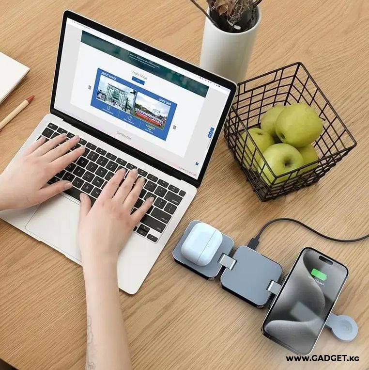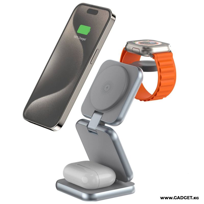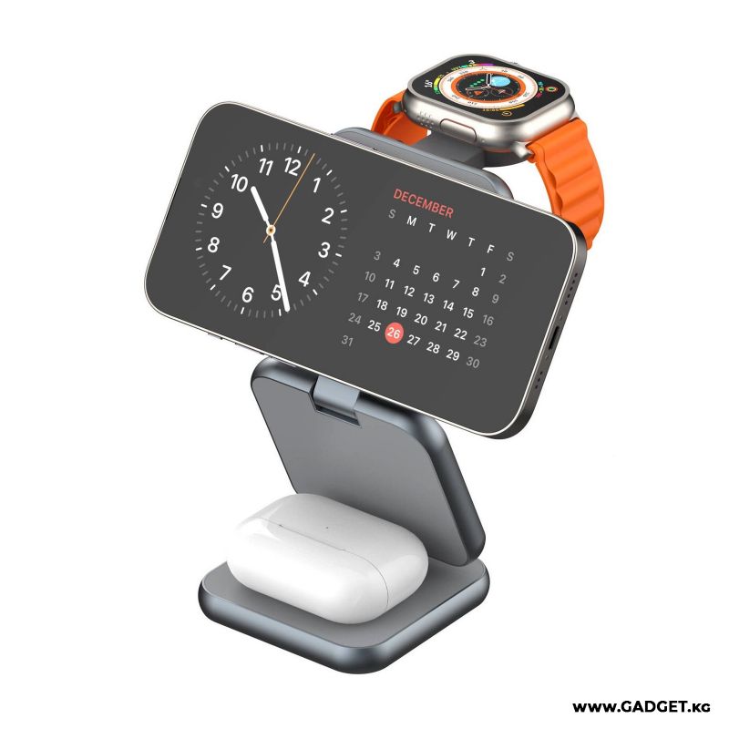 Док-станция 3в1 Wireless Charger для iPhone/Apple Watch/ AirPods – это универсальное быстрое беспроводное зарядное устройство, которое может заряжать сразу 3 девайса.