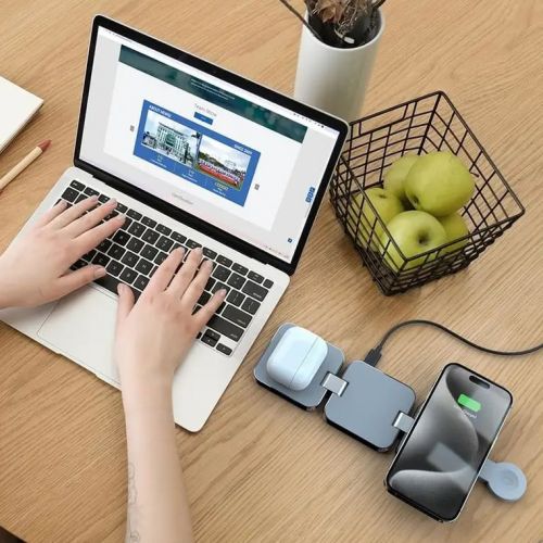Забудьте про кабели, переходники и уйму розеток, которые нужны для работы ваших девайсов от Apple. Теперь вы можете получить все и сразу в одном комплекте. Эта беспроводная зарядная станция имеет общую мощность 15 Вт и состоит из панели для зарядки вашего смартфона iPhone, умных часов Apple Watch, панели для беспроводной зарядки AirPods.