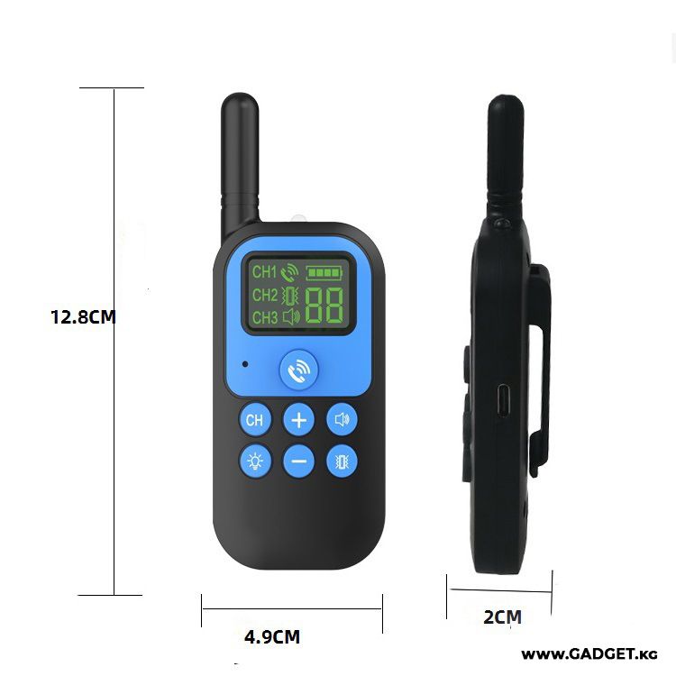 Ошейник оснащен функцией рации, которая позволяет вам давать команды и корректировать поведение собаки на расстоянии в реальном времени. Рация работает на расстоянии до 1500 метров на открытой местности, и до 500 метров если имеются какие-нибудь препятствия.