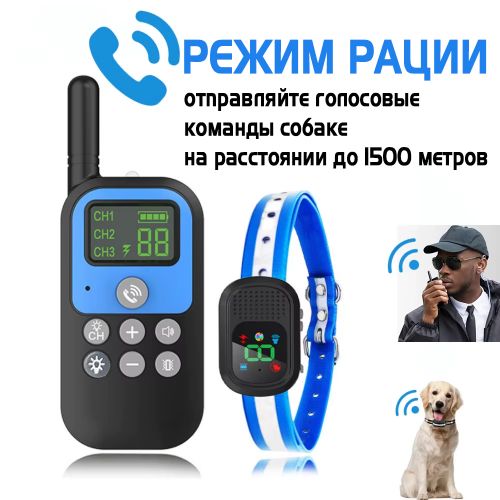 Этот электронный ошейник для дрессировки с рацией поможет быть на связи с собакой даже если она отойдет на 1.5 км! По рации можно голосом подавать привычные команды «Ко мне», «Нельзя», «Фас» и т.д.