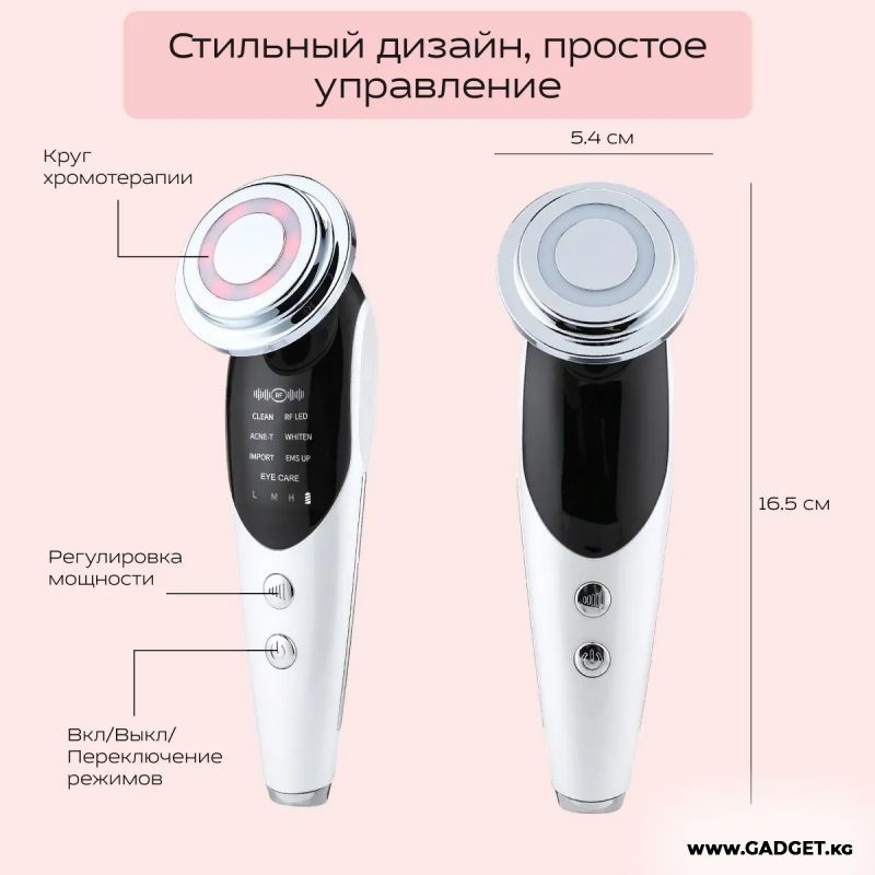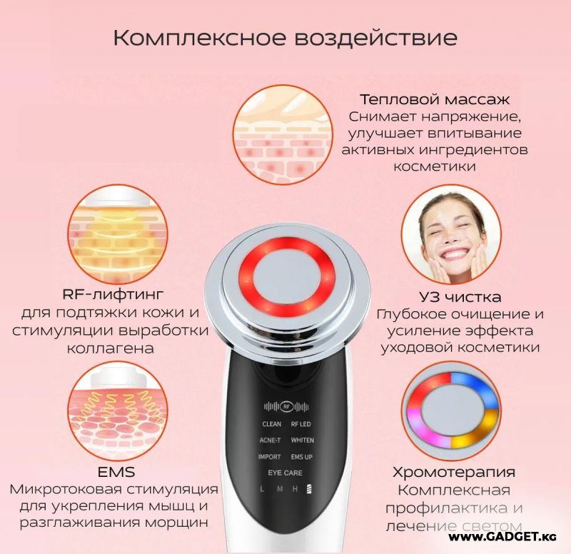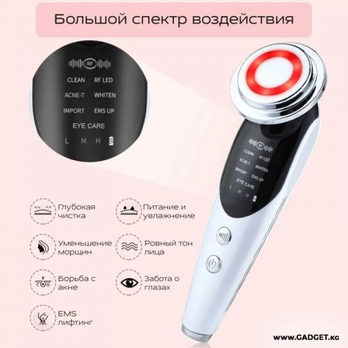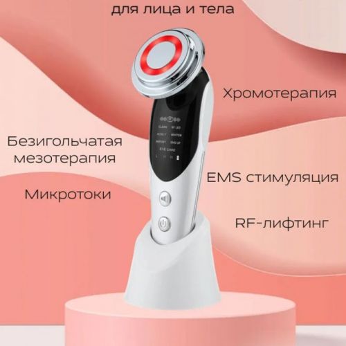 Многофункциональный аппарат для лица с функциями RF-лифтинга и EMS — это массажер с функциями RF-лифтинга, мезопорации, электропорации, электромиостимуляции и светотерапии, то есть для комплексного ухода за кожей лица и тела, и ее быстрого, легкого и эффективного омоложения.