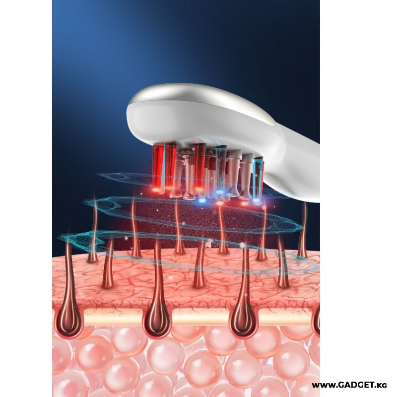 Массажная расческа + микротоки (EMS) + светотерапия для укрепления и стимуляции роста волос