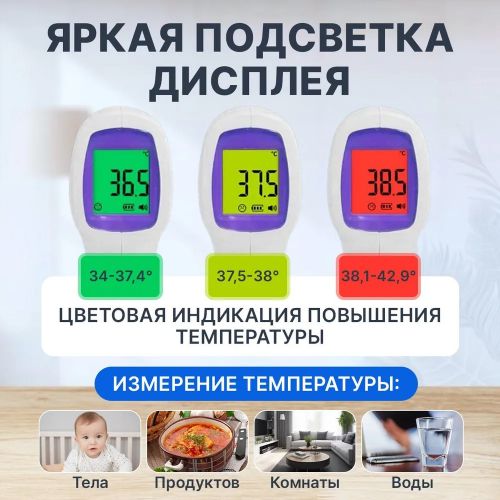 Бесконтактный инфракрасный термометр AinengKong SPIT001 предназначен как для измерения температуры тела человека, так и для проверки температуры поверхности объектов. Термометр поможет измерить температуру тела ребенка во время сна, а также различных объектов: воздуха, воды перед купанием, различных поверхностей, так как он обладает широким диапазоном измерения (0°С - 118°С)