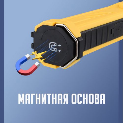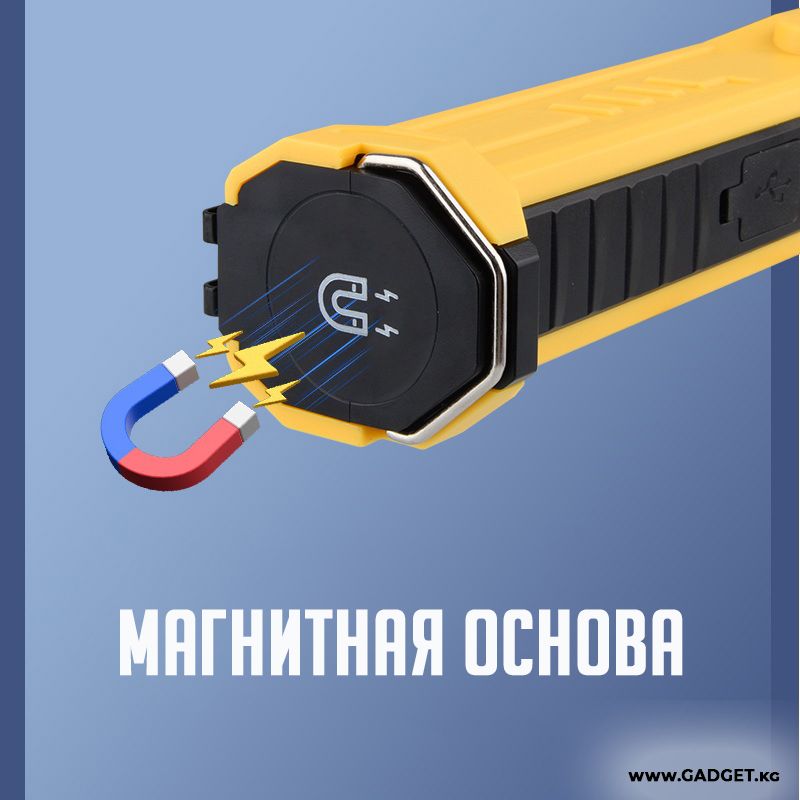 Особенностью этого фонарика является магнитное крепление. С его помощью можно легко прикрепить фонарик к различным металлическим поверхностям, освободив руки для других задач. Это особенно полезно при ремонте или работе в тёмных местах.