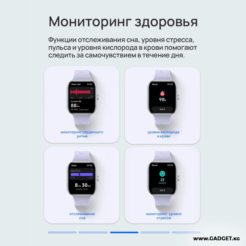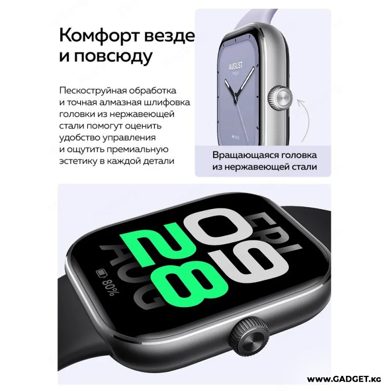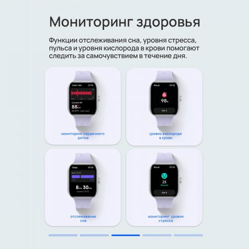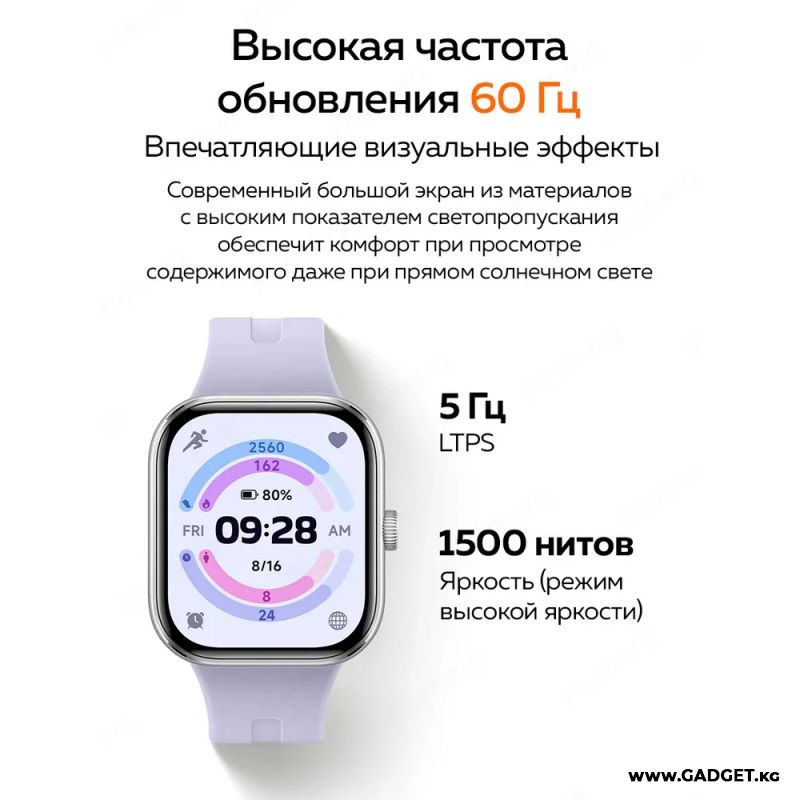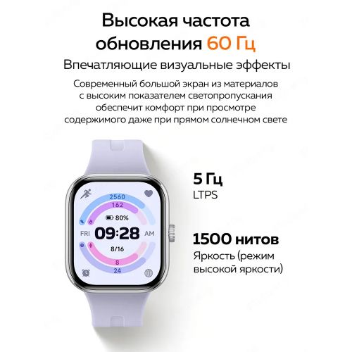 С квадратным форм-фактором и современным силиконовым ремешком, эти часы не только удобны, но и являются стильным аксессуаром для любого повода. Яркий сенсорный AMOLED 60Гц экран с высоким разрешением 514x432 обеспечивает четкое отображение времени, даты и ваших тренировочных результатов.