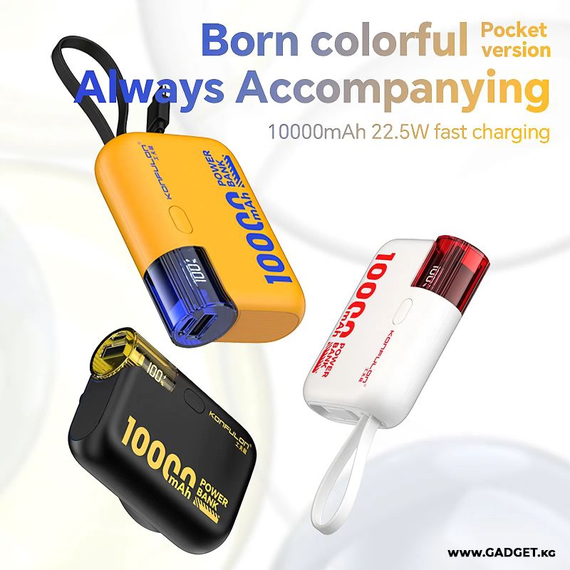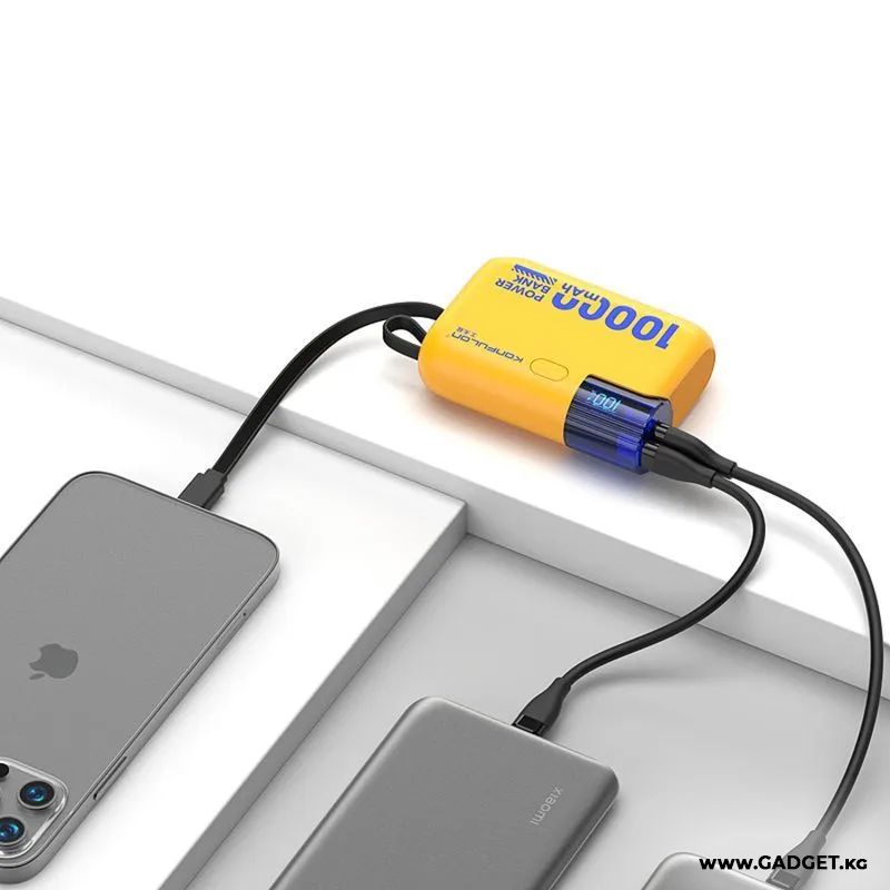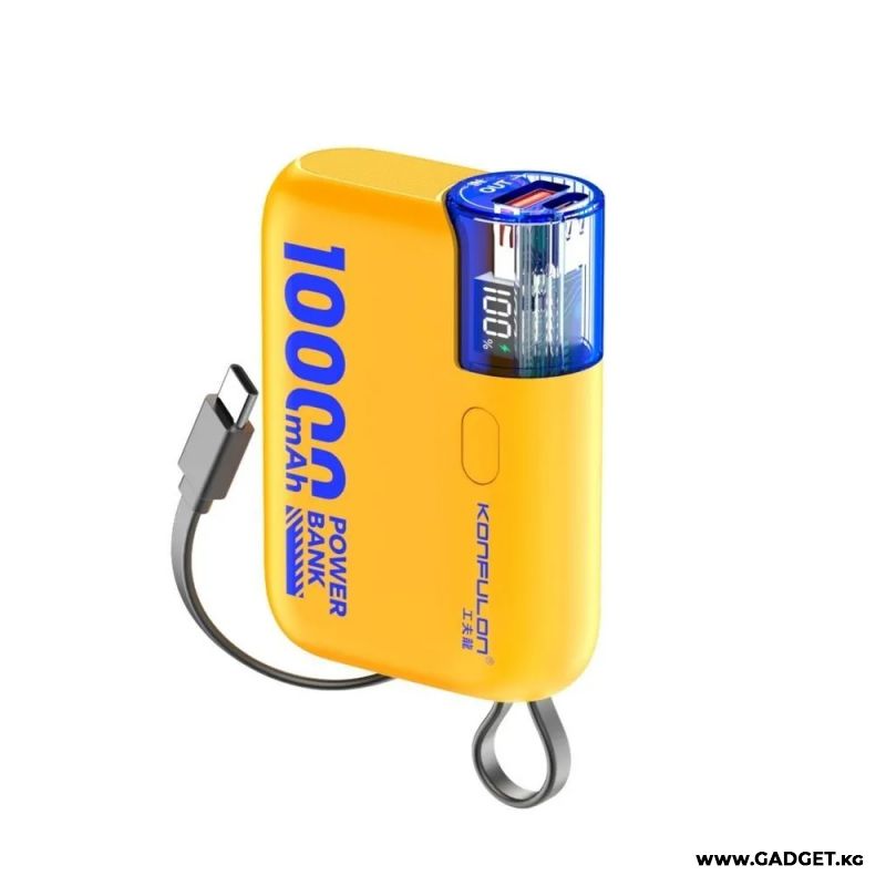 Мини повербанк 22.5W с супер быстрой зарядкой от Konfulon обладает ёмкостью 10000 мАч и оснащен разъемами 1хType-C PD20 W 1хUSB+кабель Type-C или Lighting. Зарядное устройство (Аккумулятор) оснащен качественной литий-полимерной (Li-Pol) батареей, что гарантирует ему долгий срок эксплуатации и безопасность при использовании. Power Bank имеет многоступенчатую защиту от короткого замыкания, перегрузки по току и напряжению, перегрева. Наличие LED индикатора помогает следить за остаточным уровнем заряда. Одновременно можно заряжать до 3-х устройств. Практичный и приятный тактильно корпус аккумулятора выполнен из высококачественного пластика. Удобно держать в руке и переносить.