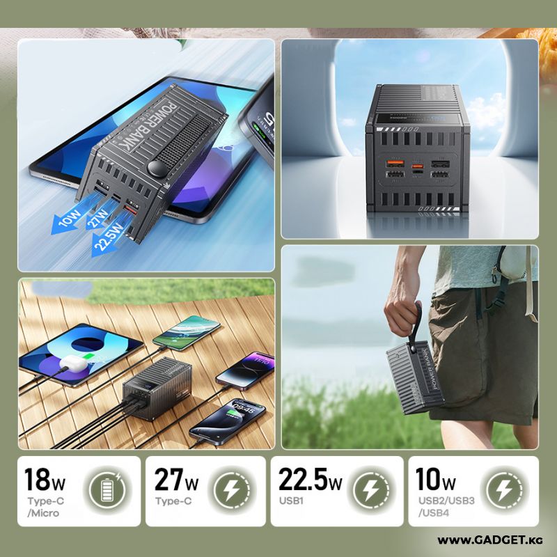 Powerbank подходит для зарядки смартфона, планшета, аудио колонок, наушников и другой электроники. Пауэр банк 50000 mah совместим с различными устройствами, включая смартфоны iPhone и Android. Вы можете использовать его с устройствами от Xiaomi, Samsung, Huawei, Realmi.
