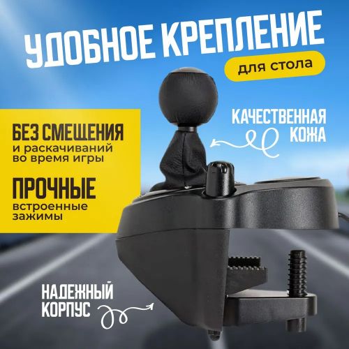 Рычаг переключения шести передач Н-образной формы легко передвигается и полностью защелкивается в выбранной вами позиции, помогая выполнять точное и плавное переключение передач на крутых поворотах и при езде по прямой. Износостойкие встроенные зажимы и болты позволяют надежно зафиксировать рычаг переключения передач Driving Force на столе или гоночном симуляторе, сводя к минимуму смещение или шатание во время выполнения резких маневров.