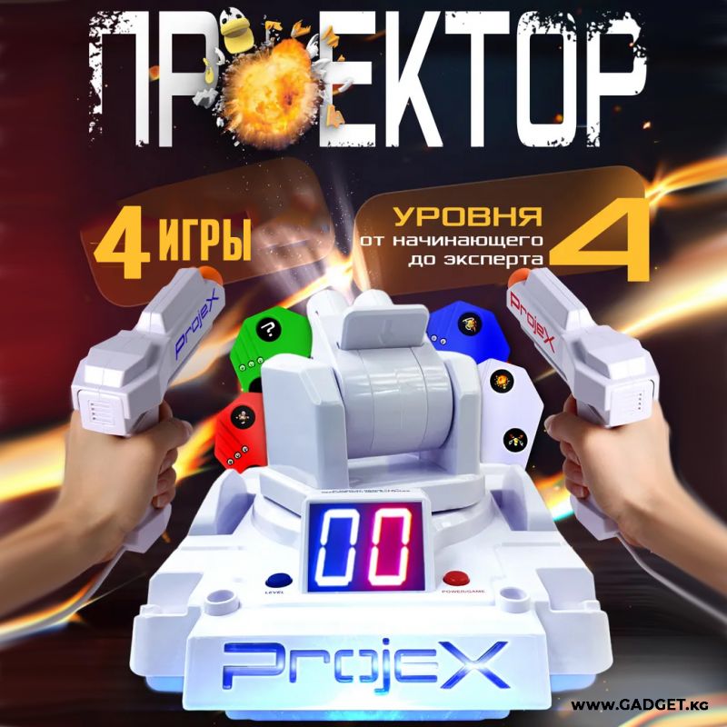 Projex поможет развить у ребёнка внимание, реакцию и меткость в весёлой и увлекательной форме. Игра безопасна для детей, ведь вместо настоящих пуль — лазерный луч.