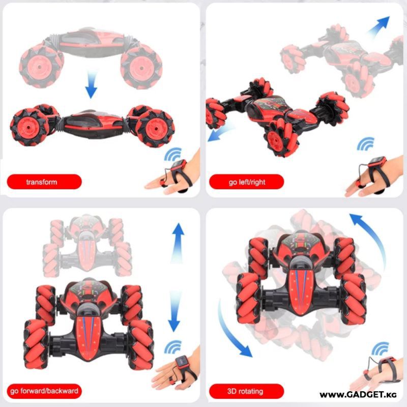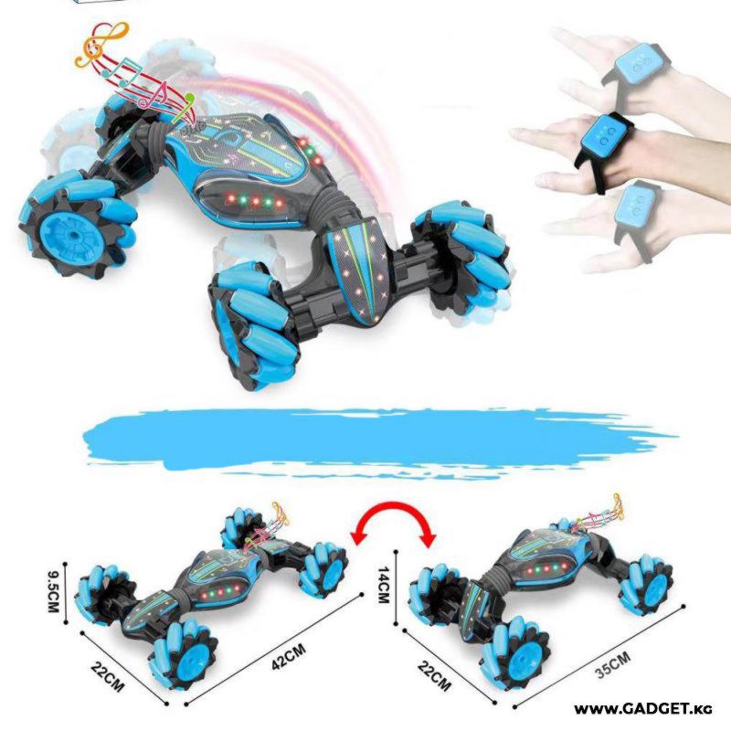 Предстваляем Вам новинку 2019 года - Светящаяся трюковая машинка-багги с управлением от руки. Такого Вы еще не видели. Мало того, что она выполняет развороты на 360 градусов, умеет приподнимать кабину для лучшей проходимости по бездорожью, ездит боком, ездит вверх ногами, очень быстрая и красивая, так еще она управляется от браслета, который крепится на руку. Это настоящая магия. Теперь машинка и драйвер одно целое. Опустил немного руку вперед, машинка мчится вперед, нужно объехать препятствие, легко, наклоняешь руку влево или вправо, и машинка тут-же реагирует на команду! Играться будут все, от мала до велика. Отличный подарок на любой праздник.