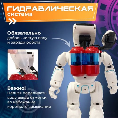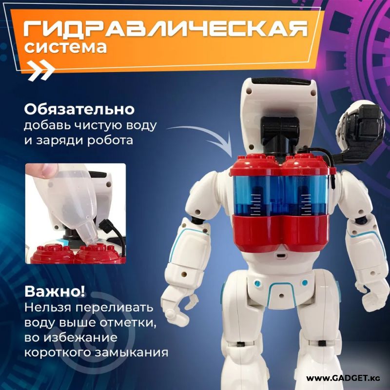 Самая долгожданная новинка и мечта каждого мальчишки. Гидроэлектрический робот на радиоуправлении поразит Вашего ребенка удивительной детализацией, маневренностью и футуристичным дизайном, добавляющим игре реалистичности. Он оснащен дистанционным управлением и инновационной системой преобразования энергии воды. Именно вода помогает ему совершать крутые трюки, танцевать и стрелять из ракетной установки. Гидроробот управляется с помощью жестов и пульта управления. Также Вы можете запрограммировать его движения самостоятельно.
