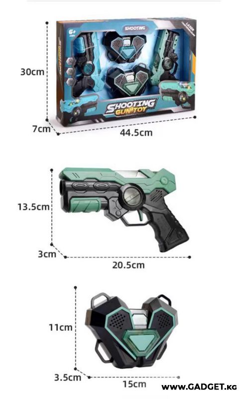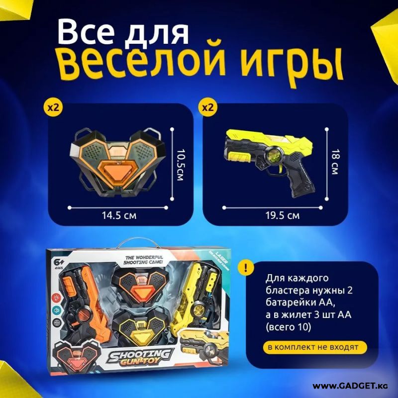 - Изготовлены и пистолеты, и жилеты из прочного и экологичного ABS пластика. Упав, они не разобьются, для здоровья абсолютно безвредны.