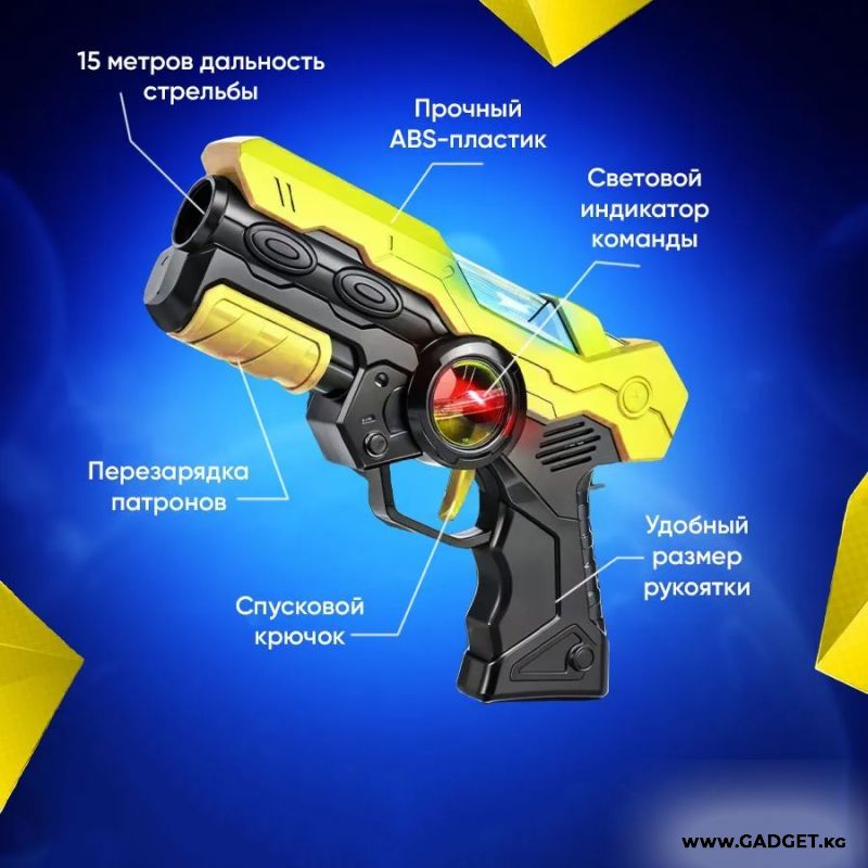 Лазерные пистолеты игрушки (тагеры) функционируют практически так же, как пульт от телевизора – дистанционно, и абсолютно безопасно для человека. Игрушка отлично подойдет как взрослым, так и детям любых возрастов (хотя лучше малышам до 4 лет бластер не давать). Играть можно где угодно – от вашей квартиры до лесного массива.