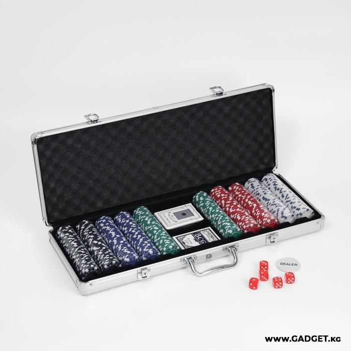 Покер в металлическом кейсе (карты 2 колоды, фишки 500 шт, без номинала)