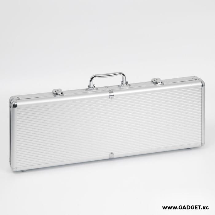 Набор в металлическом кейсе прекрасно подойдет для небольшой компании. Такой кейс удобно брать с собой — на вечеринку, на дачу, на пикник, в гости. Он закрывается на ключ, а значит, ни одна фишка из игры не потеряется в дороге. Пластиковые карты, фишки и внушительного вида кейс придают игре особую атмосферу.