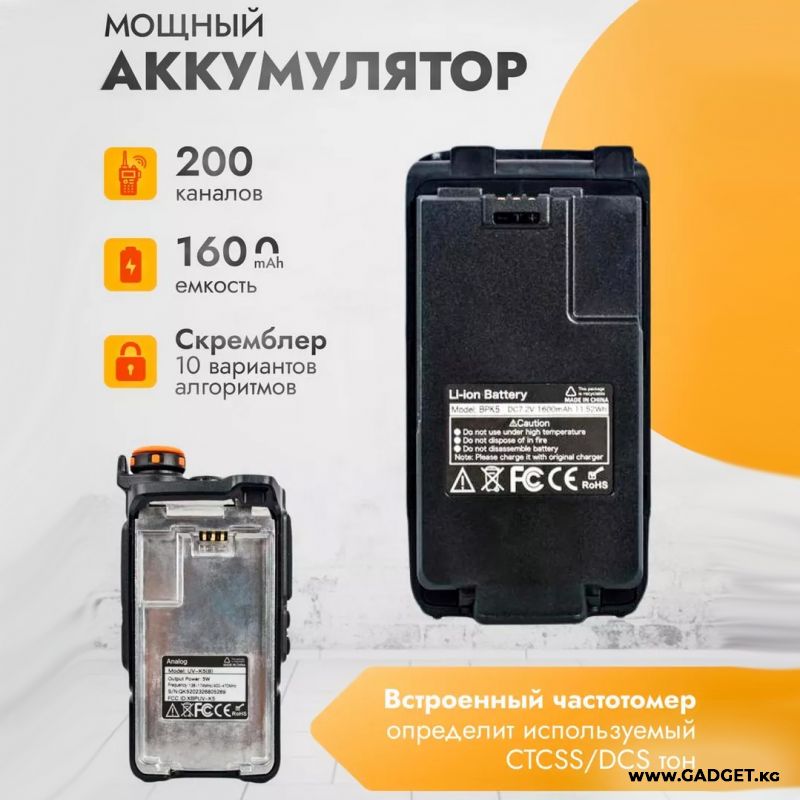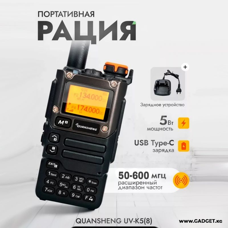 Новая рация Quansheng UV-K5 может оказаться идеальным выбором для тех, кто ищет надежное и высококачественное радиооборудование. UV-K5 работает в диапазонах 136-174 МГц и 400-470 МГц. Особенность данного устройства связи в том, что оно может принимать сигнал в расширенном диапазоне от 50 до 600 МГц (имеет промежутки!), включая авиационный и речной.