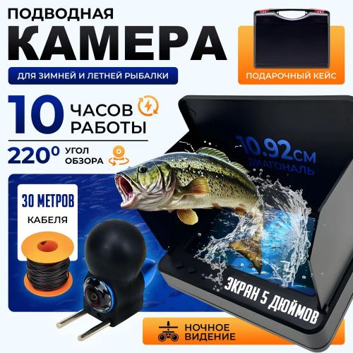 Подводная камера для рыбалки Fish Finder, Экран 5 дюймов, 30 метров