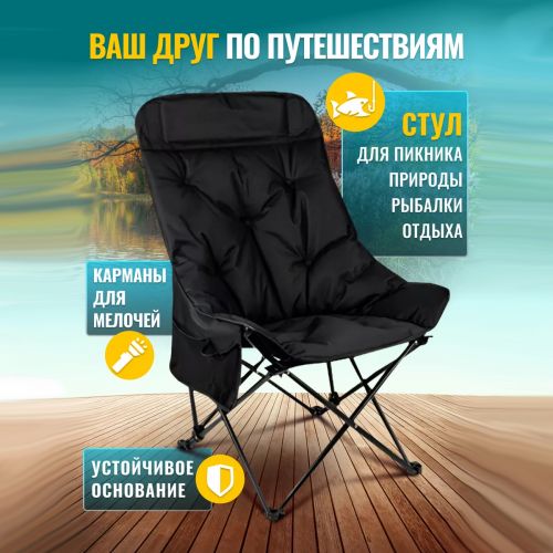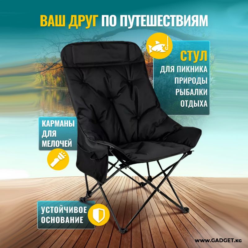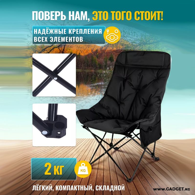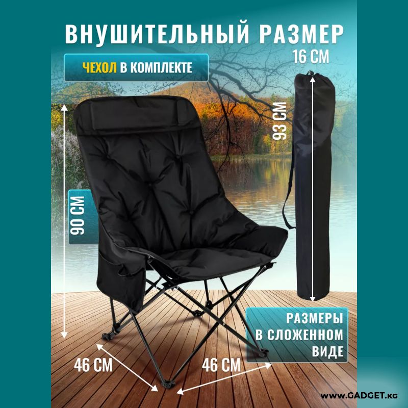 Походное раскладное кресло — это идеальный выбор для отдыха на природе и дома. Оно большое, мягкое и комфортное, что делает его отличным местом для релаксации после долгого дня.