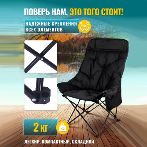 Это универсальное решение для пикника, кемпинга или просто отдыха в саду. Благодаря своей мягкости и комфорту кресло подарит вам незабываемые моменты отдыха и расслабления.