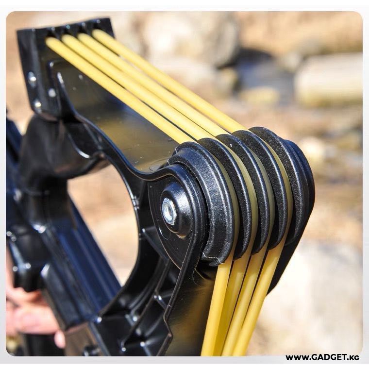 Рогатка-Арбалет Forest Hunter - пожалуй самая технологичная рогатка на рынке, внешний вид рогатки очень брутальный. Рукоятка выполнена из качественного металлического сплава. Сама резинка привязывается не к рукоятке, а к тетиве, которая натягивается между резинками, что делает стрельбу очень комфортной, убирая все вибрации, а также придает дополнительный разгон снаряду.