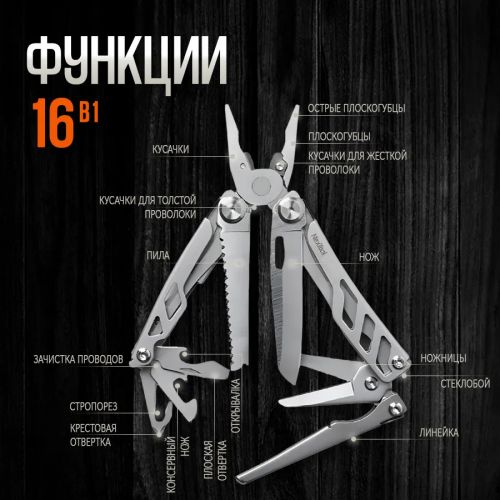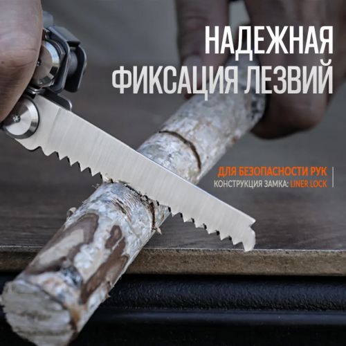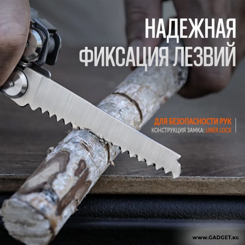Безопасность — это не пустой звук. У этого мультитула есть фиксаторы для каждого инструмента, что защищает вас от случайных травм. Вы можете смело использовать его в любых условиях, будь то ремонт велосипеда или приготовление пищи на природе. Это то, что нужно для уверенности в своих действиях!