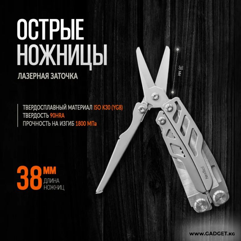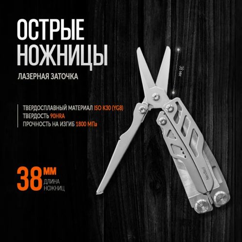 Из чего же сделан этот многозадачный супергерой? Основные детали выполнены из прочной стали, устойчивой к коррозии, что гарантирует надежность в любых условиях. Ножи и инструменты имеют толщину в 2 мм и твердость 30 HRc — это значит, что они будут резать, открывать и справляться с любыми задачами, как будто только что вышли из магазина! Ведь каждый из нас хотел бы, чтобы его мультитул служил долго, так?