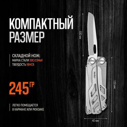Кто не любит дополнительные сантиметры в кармане? NexTool NE20220 создан с любовью к вашему комфорту. Его длина в раскрытом состоянии составляет всего 11 см, что делает его идеальным для носки в кармане или сумке. Вы можете не переживать о лишнем весе — этот мультитул не перегрузит ваш рюкзак во время долгих походов, а в нужный момент превратится в надежный инструмент.
