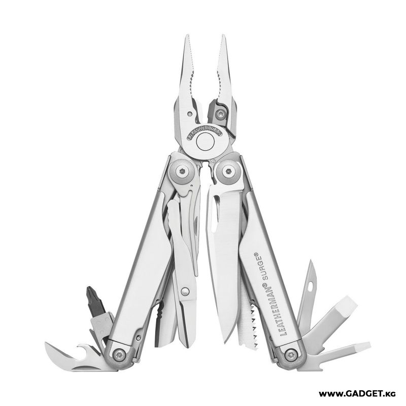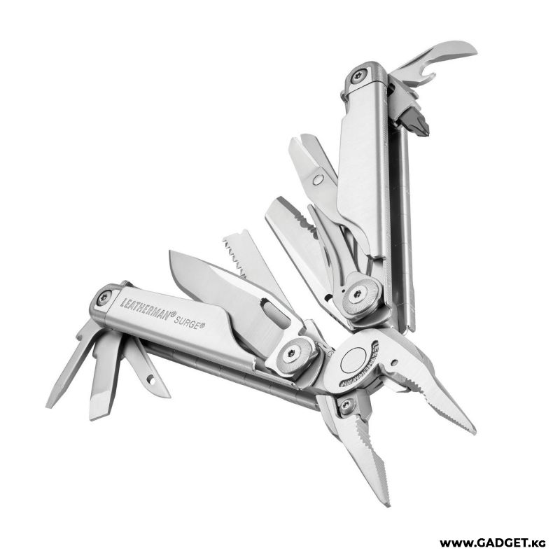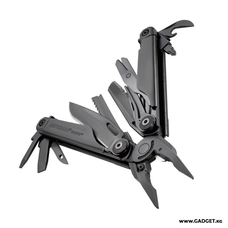 - 21 инструмент в одном: SURGE объединяет в себе плоскогубцы, кусачки, ножи (серрейторный и прямой), пилы (по дереву и металлу), отвертки (плоские и крестовые), открывалки для бутылок и консервов, шило, напильник, линейки и многое другое. Вы будете готовы к любой ситуации, будь то ремонт автомобиля, сборка мебели или открытие консервов на пикнике.