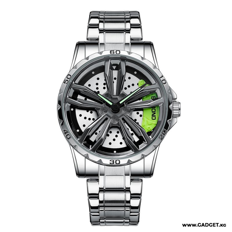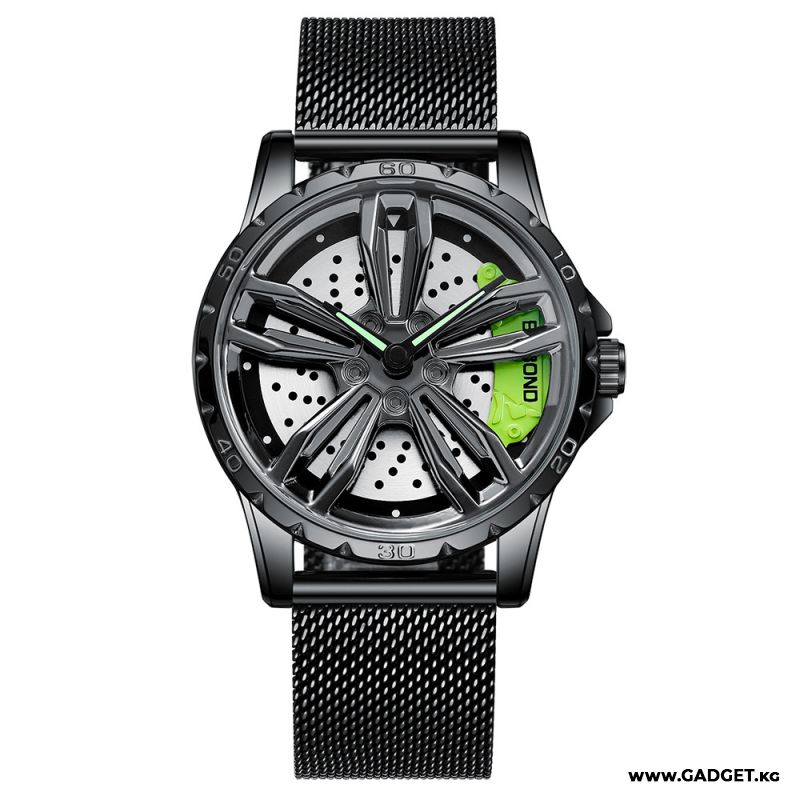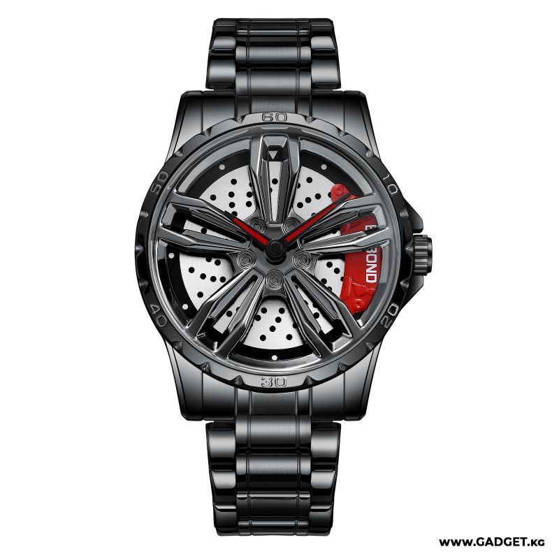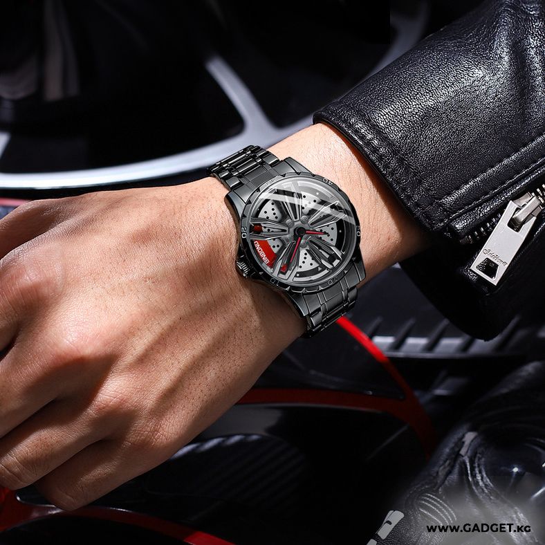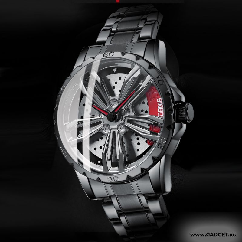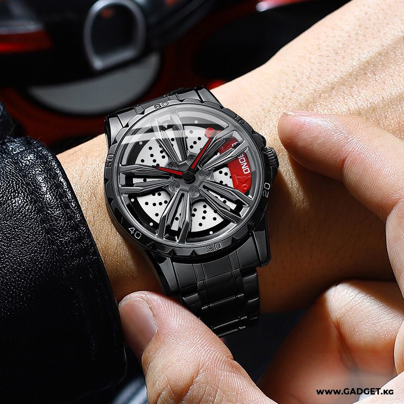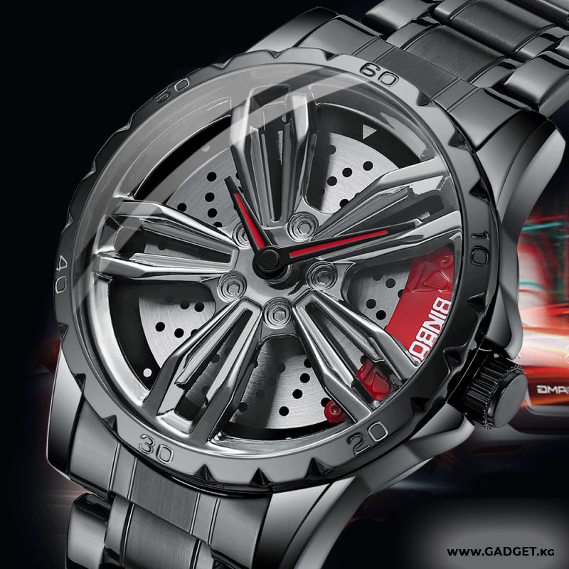 - Выразительный дизайн: Часы оформлены в стиле автомобильного диска с крутящимся элементом, что делает их по-настоящему уникальными и интересными.