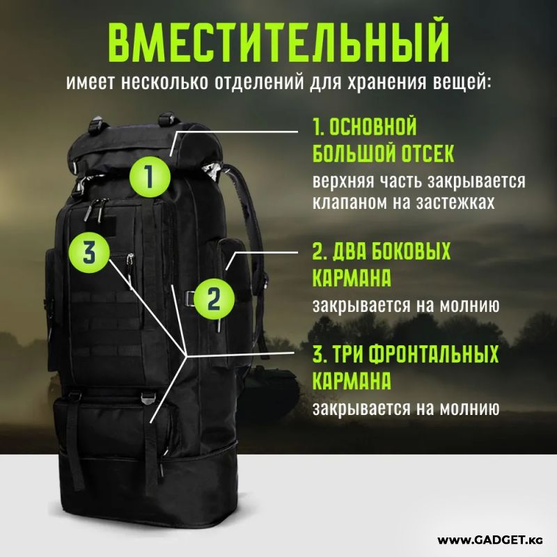 - ультрапрочные швы и фурнитура, а также устойчивая к воздействию влаги и истиранию ткань тактического рюкзака гарантируют его долговечность.