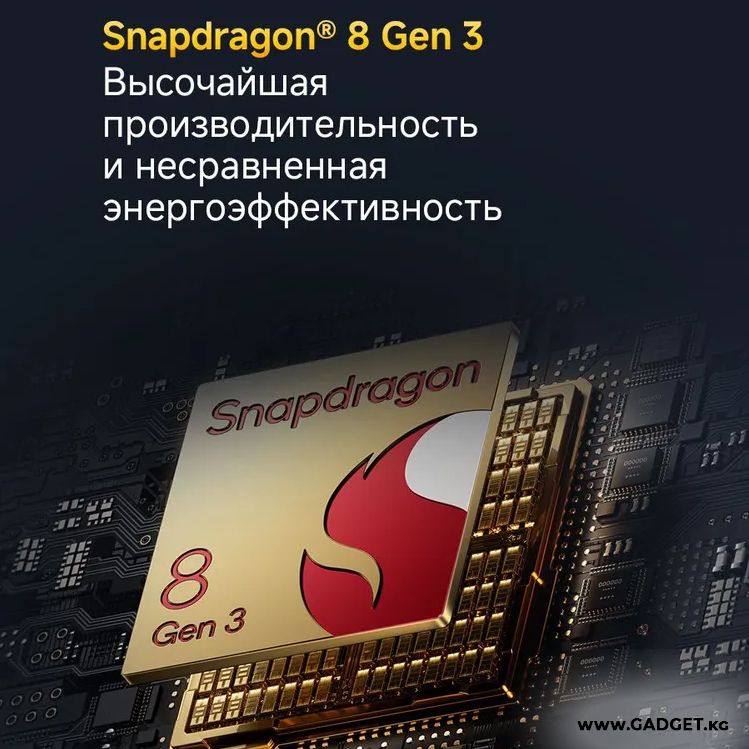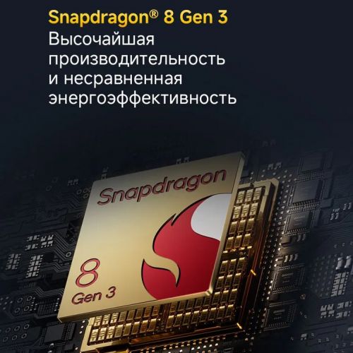 - Процессор: Qualcomm Snapdragon 8 Gen 3, 8 Ядер по 3,3 ГГц