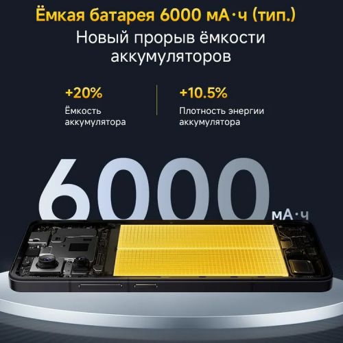 Высокоемкостная батарея на 6000 мА·ч имеет плотность, улучшенную на 10,5%, что позволило дать прирост автономности на 20%. Чипсет для 90-ваттной гиперзарядки позволяет безопасно заряжать аккумулятор до 100% за 37 минут. Оставайся на связи всегда и везде.