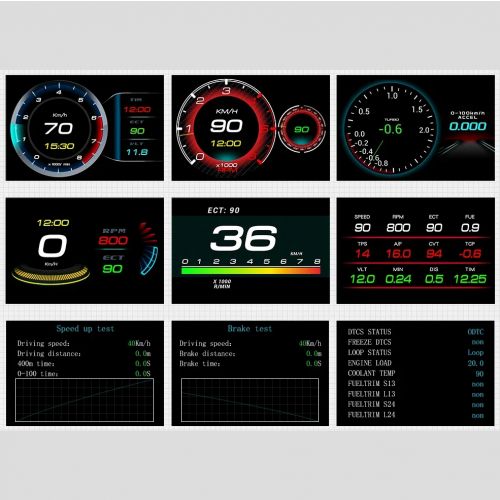 OBD режиминин функциясы: автоунаанын ылдамдыгы, суу температурасы, чыңалуу, отундун чыгымы, айлануулар, бир жолу жүрүү, жалпы жүрүү, айдоо убактысы, убакыт, киргизүү басымы, майдын температурасы, аба-отун катышы, турбонаддув басымы, киргизүү басымы, ылдамдыкты текшерүү, тормоздорду текшерүү, катанын кодун тазалоо, маалымат агымын окуу ж.б.