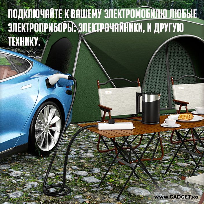 Розетканы башка электромобилдерди заряддоо (жардам берүү) үчүн колдонууга болот, бул аны электр транспорт каражаттарынын ээлери үчүн алмаштыргыс аксессуар кылат.
