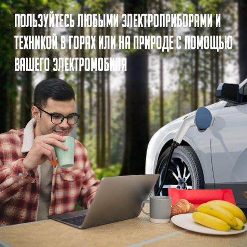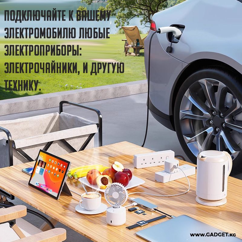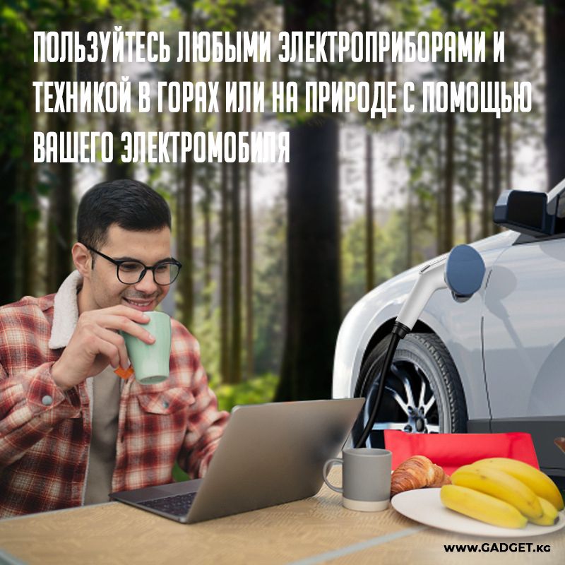 Сиздерге электроприборлорду заряддоо жана энергия менен камсыздоо үчүн инновациялык чечимди сунуштайбыз — электромобилдер үчүн GBT стандартында иштелип чыккан розетка-өткүчү. Бул түзүлүш электромобилдин заряддоо гнездосунун стандарттык чыңалууну 220 вольтка айлантууга мүмкүндүк берет жана 4 киловаттка чейин кубаттуулукту камсыздайт.