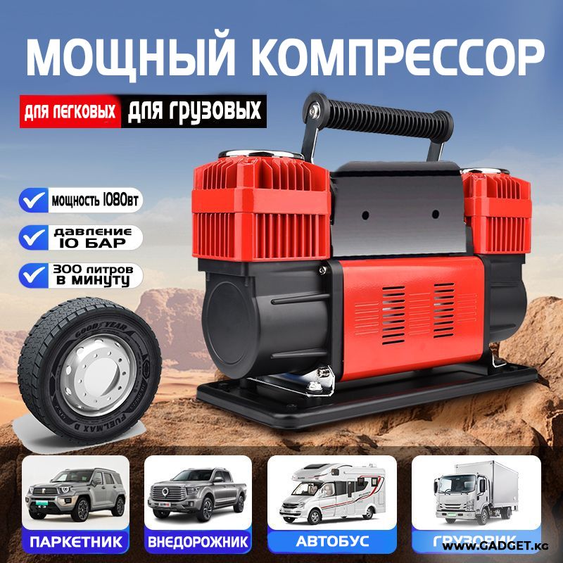 Күчтүү эки поршендүү авто компрессор Portable Compressor — жолдо ар бир айдоочу үчүн алмаштыргыс жардамчы.