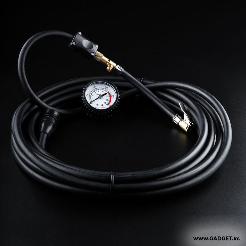 Авто компрессор GY-80L алмаштыруучу бурулган шланг менен жабдылган, анын учунда дөңгөлөктүн ниппелине туташтыруучу металлдан жасалган ыңгайлуу клемма бар. Бул компрессорду туташтыруу процессин дээрлик дароо кылып, күч жумшабастан жасоого мүмкүндүк берет.